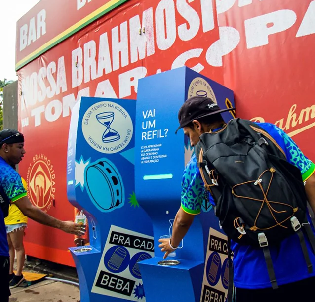 Durante a Copa do Mundo de 2022, a Budweiser contou com a RefilMe para criar uma ativação inovadora, unindo distribuição de água gratuita, sustentabilidade e consumo consciente de bebida alcoólica. Com o mote “a cada 2 ou 3 copos de bebida, tome 1 de água”, instalamos estações de hidratação em pontos estratégicos, incentivando o equilíbrio e o bem-estar do público.